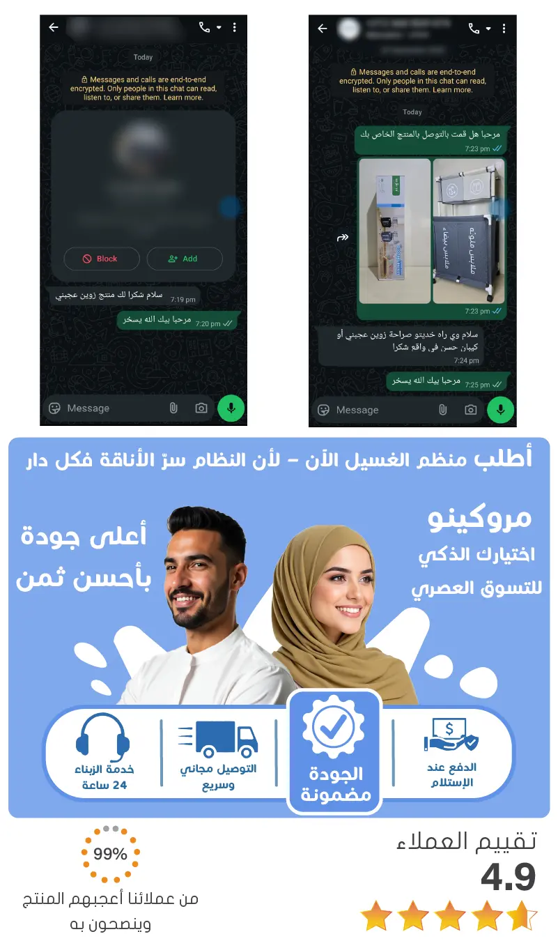 نلتزم نحن في متجر مروكينو على تقديم أعلى جودة لمنتجاتنا مع ضمان إسترجاع الأموال إذا لم يعجبك المنتج