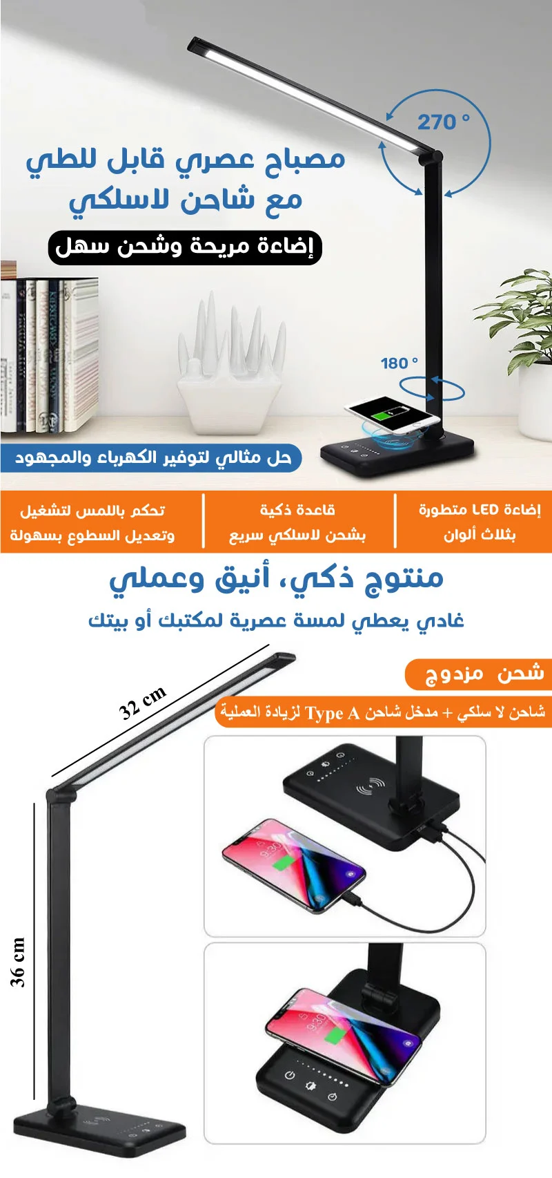 مصباح عصري مع شاحن لاسلكي قابل لطي! مصباح عصري مع شاحن لاسلكي قابل لطي! مصباح عصري مع شاحن لاسلكي قابل لطي!